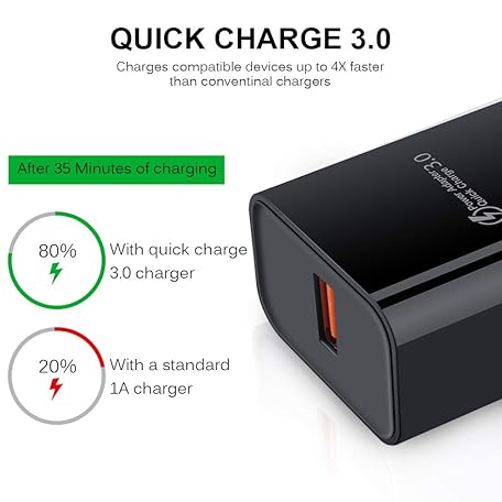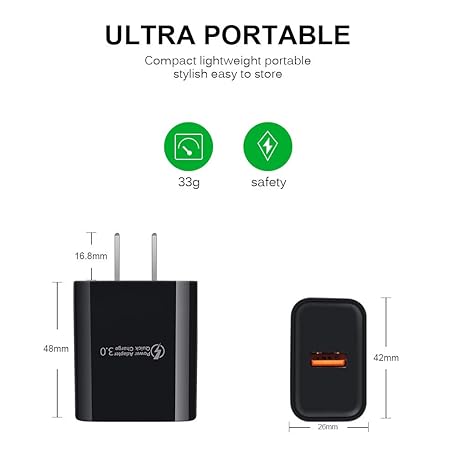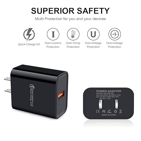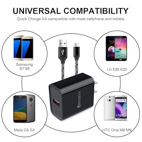 Thông tin sản phẩm Fast Adaptive Quick Charge 3.0 Wall Charger Fast Charging Block Android Charger Cable Compatible for Samsung Galaxy S7/S6 Edge/J3/J7,LG Stylo 2 3 Plus,Moto G5/E6/E5/E4,Kindle Fire 7 8,Tablet