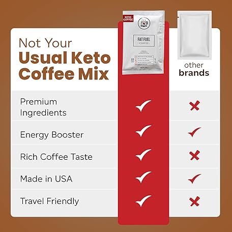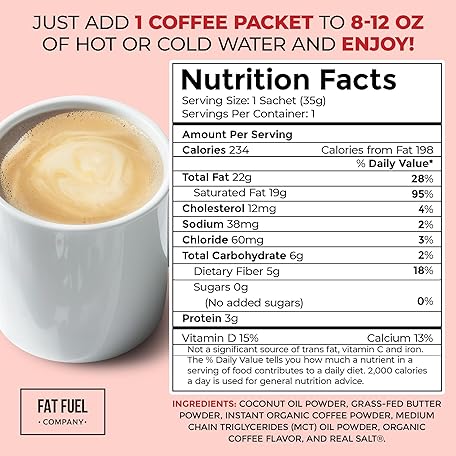 Thông tin sản phẩm FAT FUEL Keto Coffee 22g Premium Fats - With Grass Fed Butter, MCT Oil, Coconut & Redmond Real Salt - Instant Organic Coffee, One Net Carb, A True Meal Replacement - 15 Servings