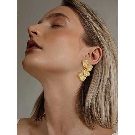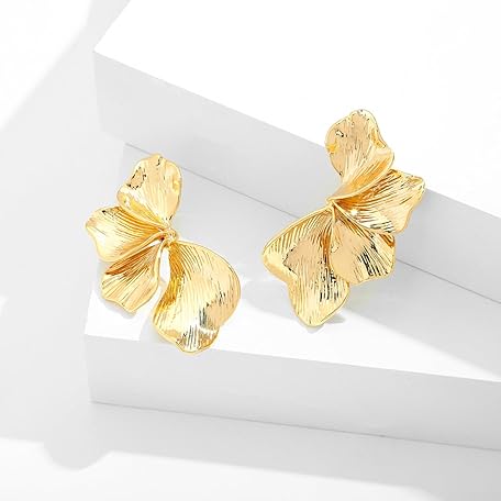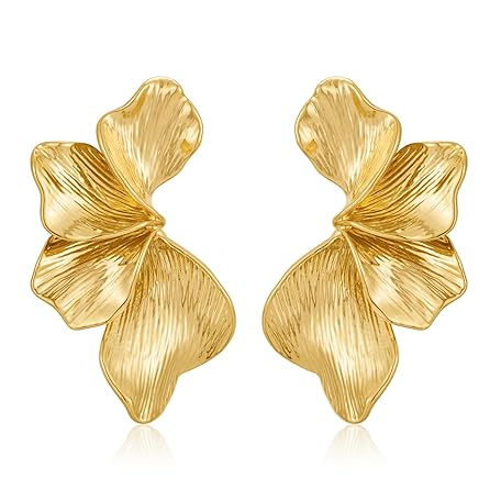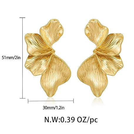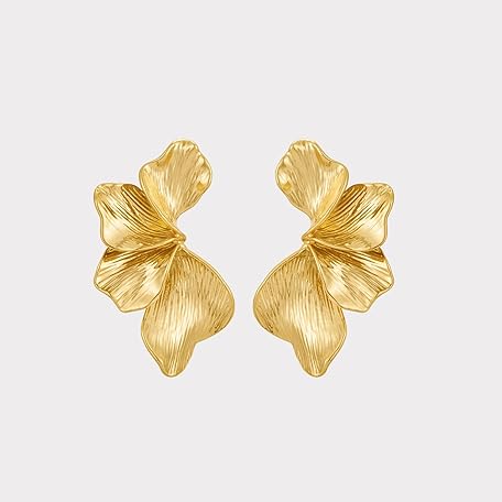 FAUTHENTICUTE Chunky Gold Statement Earrings For Women Gold Plated Sectored Flower Leaf Shell Angel Wing Earrings Large Stud Earrings Hypoallergenic Earrings