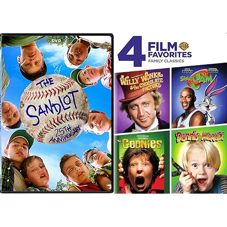 Favorite Kids 5 Family Movie Set DVD Space Jam / Goonies / Willy Wonka & The Chocolate Factory / Dennis the Menace & Sandlot Gang Bundle Comedy Film Features