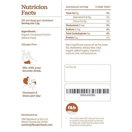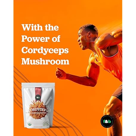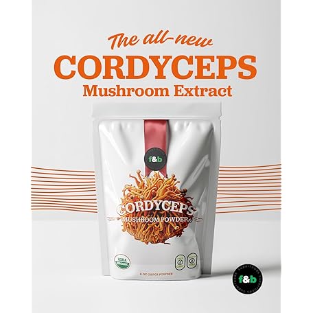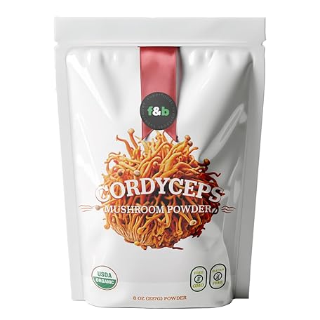 f&b superfoods Organic Cordyceps Mushroom Extract Powder, 8 Ounces | Fruit Body & Mycelium Extract | Active Polysaccharides & Cordycepic Acid | Supports Energy & Immune Health