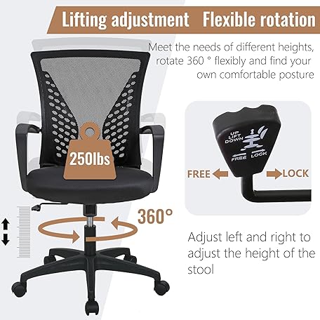 Sản phẩm FDW Home Office Chair Mid Back PC Swivel Lumbar Support Adjustable Desk Task Computer Ergonomic Comfortable Mesh Chair with Armrest (Black) đang được bán với giá ưu đãi là $25.0591 tại nước Mỹ.