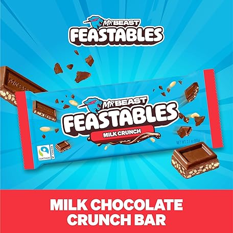 Thông tin sản phẩm Feastables MrBeast Combo Pack, King Size Milk Chocolate & Milk Crunch Bars, 10 Each, Candy Bars for Adults & Kids, Candy Bar for Snacks, Gifts, or Dessert, Fairtrade Cocoa, 2.1 Oz Each, 20 Count