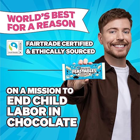 Thương hiệu Feastables là cái tên nổi tiếng được rất nhiều khách hàng trên thế giới chọn lựa. Với kiểu dáng đẹp mắt, sang trọng, sản phẩm Feastables MrBeast Cookies & Creme Chocolate Bar, New Flavor, King Size Candy Bar for Adults & Kids, Candy Bars for Snacks, Gifts, or Dessert, Sweet & Creamy Fairtrade Cocoa, 2.1 Oz Each, 10 Count là sự lựa chọn hoàn hảo nếu bạn đang tìm mua một món cho riêng mình.