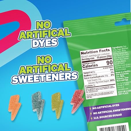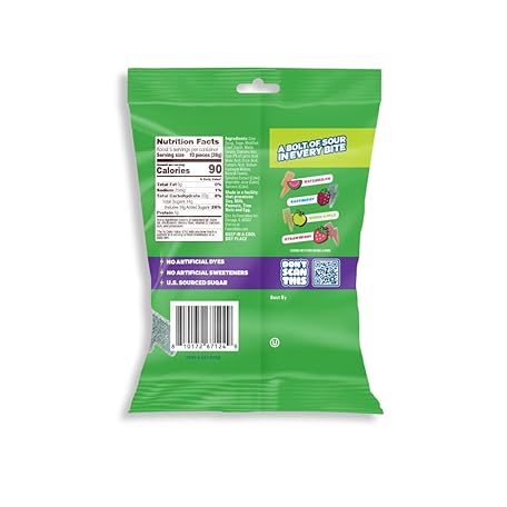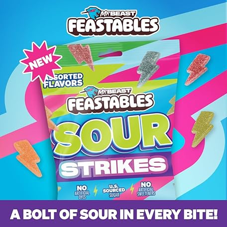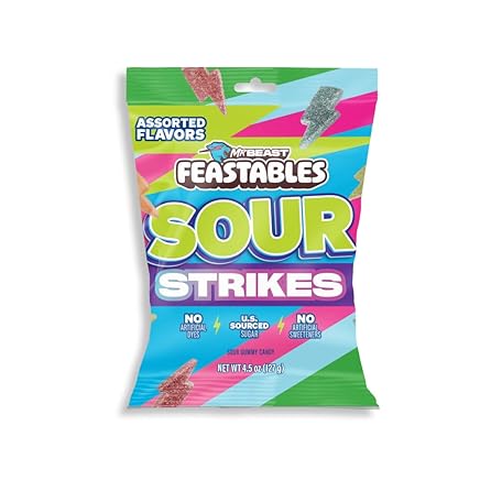 Thông tin sản phẩm Feastables Mrbeast Strikes Sour Candy, Mixed Gummies With Watermelon, Green Apple, Strawberry, and Raspberry Flavors, Candy for Adults & Kids as Snacks or Dessert, Made With Fairtrade Sugar, 12CT