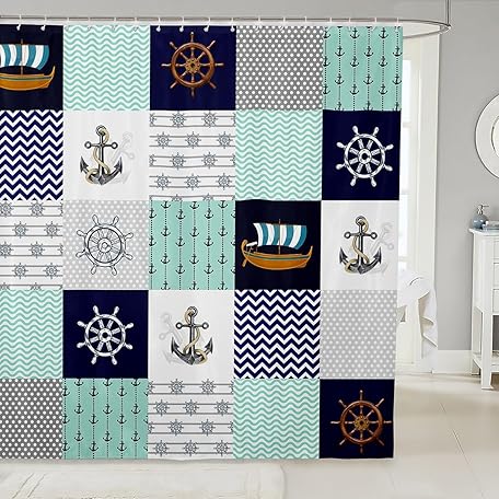 • Feelyou Anchor Decor Shower Curtain 72"x78" Kids Ocean Nautical Voyage Bathroom Shower Curtain Set for Boys Girls Teens Sailboat Printed Bath Curtain Marine Themed Bathroom Accessories