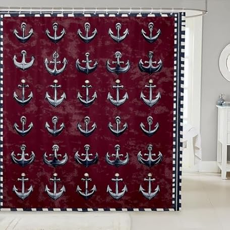 Feelyou Anchor Decor Shower Curtain 72"x84" Ocean Nautical Themed Bath Curtain Kids Boys Girls Ocean Voyage Marine Theme Bathroom Shower Curtain Set Coastal Sea Adventure Bathroom Accessories