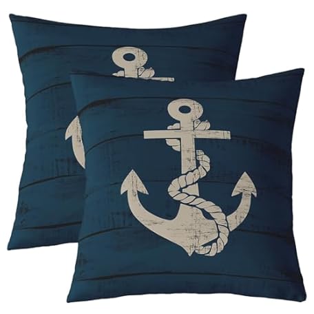 • Feelyou Anchor Decor Throw Pillow Covers 24"x24" Set of 2 Nautical Theme Decorative Pillowcase for Sofa Couch Ocean Voyage Cushion Cover Marine Theme Outdoor Pillows Covers Sea Adventure