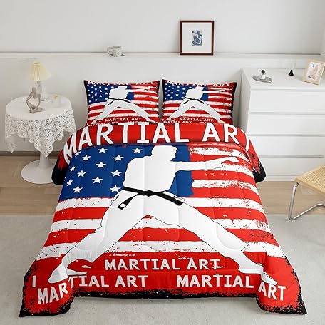 • Feelyou Kids American Flag Comforter Set Full Size Boys Girls Karate Kungfu Taekwondo Comforter Martial Art Bedding Set Korean Flag Style Quilt Set