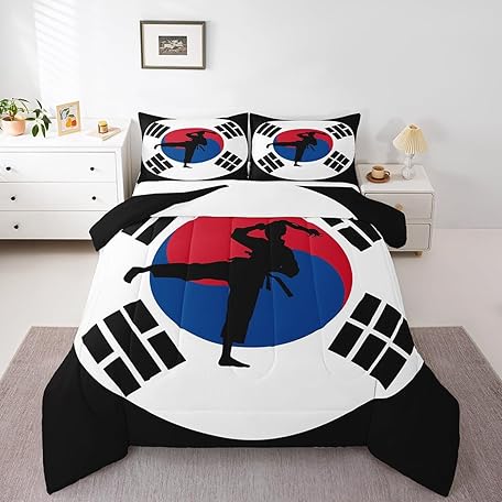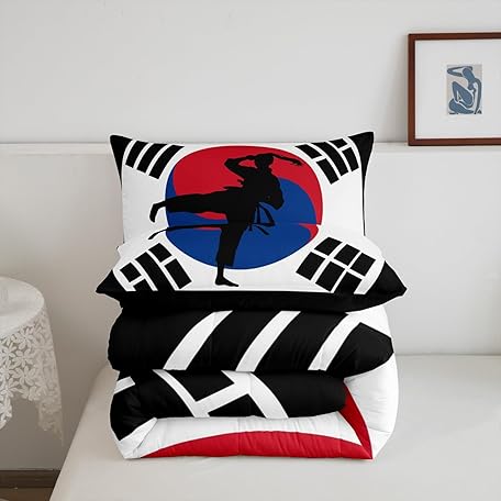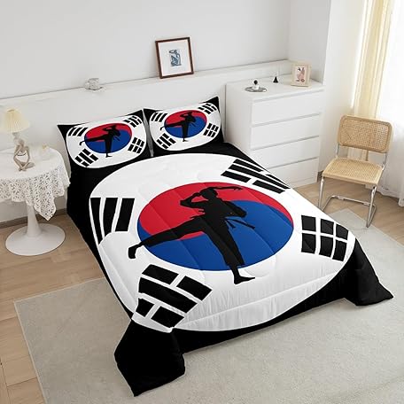 • Feelyou Kids Taekwondo Comforter Set Twin Size Boys Girls Karate Kungfu Comforter Martial Art Bedding Set Korean Flag Style Quilt Set