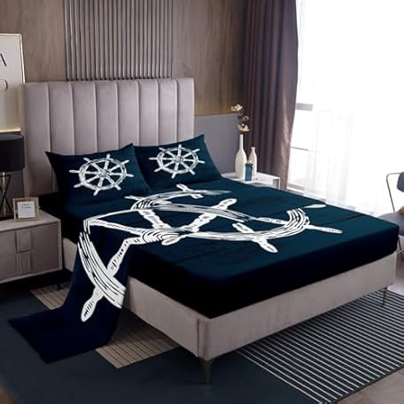 Feelyou Nautical Sheet Set Twin Size Kids Summer Holiday Blue Sheets with Deep Pocket Fitted Sheet for Boys Girls Teens Ocean Voyage Bed Sheets Set Marine Theme Bedding Set Sea Adventure Bed Set