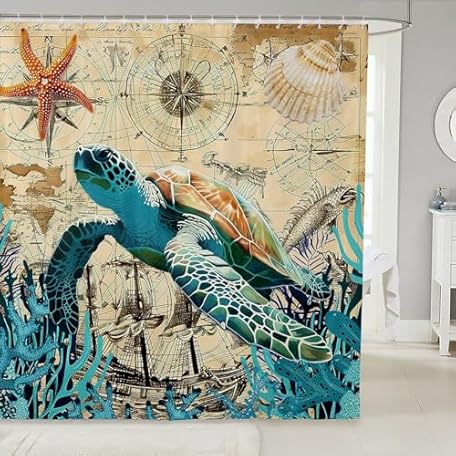 • Feelyou Sea Turtle Shower Curtain 72"x78" Kids Nautical Sailboat Anchor Bathroom Shower Curtain Set for Boys Girls Compass Print Sea Adventure Bath Curtain Summer Ocean Voyage Bathroom Accessories