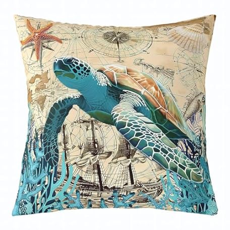 Feelyou Sea Turtle Throw Pillow Covers 16"x16" Set of 4 Nautical Sailboat Anchor Decorative Pillowcase for Sofa Bed Compass Print Sea Adventure Cushion Cover Summer Ocean Voyage Outdoor Pillows Covers