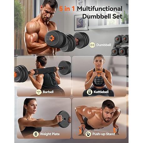 Thông tin sản phẩm FEIERDUN Adjustable Dumbbells, 20/30/40/45/70/90lbs Free Weight Set with Connector, 5 in1 Dumbbells Set Used as Barbell, Kettlebells, Push up Stand, Weight Plate, Fitness Exercises for Home Gym Suitable Men/Women