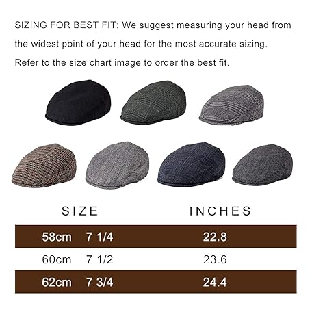 • FEINION Men's Wool Tweed Newsboy Ivy Cap Gatsby Golf Flat Hat