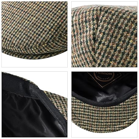 • FEINION Men's Wool Tweed Newsboy Ivy Cap Gatsby Golf Flat Hat