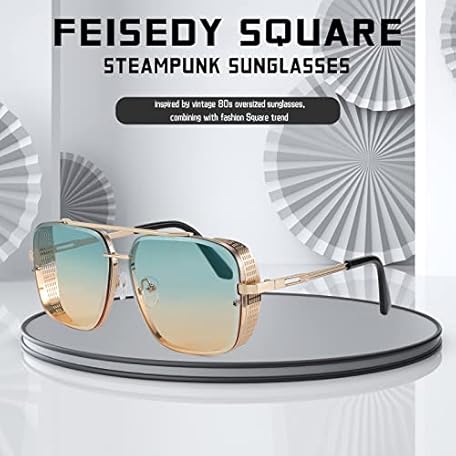 Sản phẩm FEISEDY Sunglasses Mens Women Vintage Pilot Square Trendy Metal Steampunk Fishing Driving Sun Glasses B2894 đang được bán với giá ưu đãi là $15.6742 tại nước Mỹ.