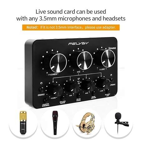 Sản phẩm FELYBY Multifunctional Sound Card Portable Live Sound Card Audio Mixer Voice Changer Recording Sound Card for PC/Laptop/Cellphone/Tablet/X-Box/PS4 (Live Sound Card) đang được bán với giá ưu đãi là 0 tại nước Mỹ.