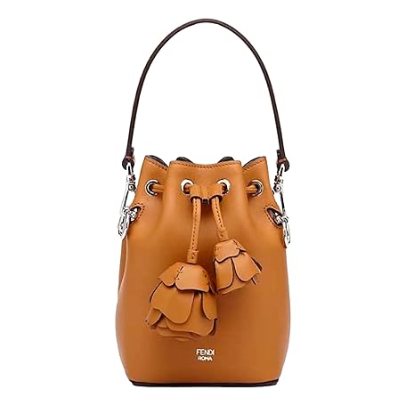 FENDI Calfskin F is 3D Flower Mini Mon Tresor Bucket Bag Brown Tan 8BS010 New