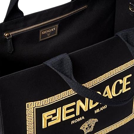 FENDI Fendace Womens Black Canvas Convertible Large Shopping Tote 8BH395