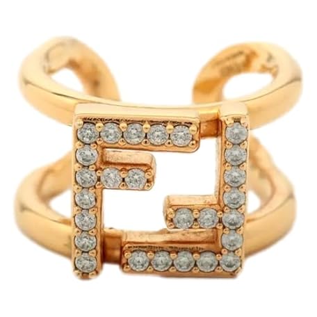 FENDI FF Anello Gold and Crystal Embellished Ring, Small, Luxury Designer Jewelry, Gold-Tone Finish with Signature FF Logo, Model 8AH246