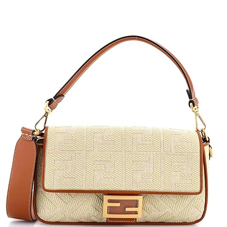 FENDI Pre-Loved Baguette NM Bag Zucca Embroidered Raffia Medium, Neutral