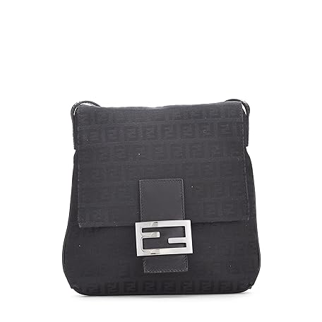 FENDI Pre-Loved Black Zucchino Canvas Tube Messenger Bag Small, Black