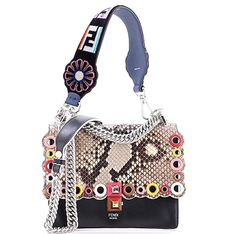 FENDI Pre-Loved Eyelet Kan I Bag Leather and Python Small, Black