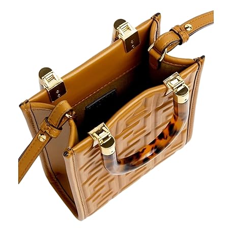 FENDI Sunshine Shopper Brown Tan Small Handbag Crossbody Bag 8BS051 New