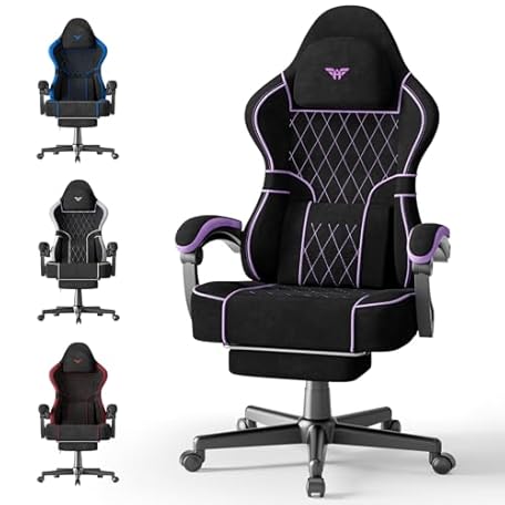 Ferghana Gaming Chair, Velvet Fabric Comfortable Computer Chair with Footrest and Linkage Armrest, Ergonomic High Back Game Chair with Massage Lumbar Support for Adult, Black/Purple