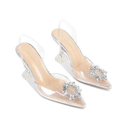 Sản phẩm Fericzot Women's Clear Heels Shoes,Slingback Crystal Rhinestones Wedding Pointed Toe Shoes High Heel Sandals đang được bán với giá ưu đãi là $68.6482 tại nước Mỹ.