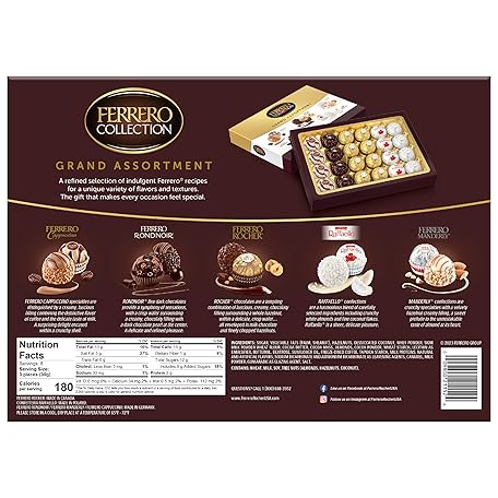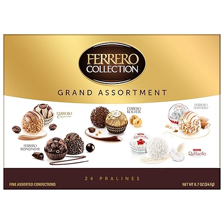 Thông tin sản phẩm Ferrero Collection Grand Assortment, Hazelnut, Dark, Coconut, Almond, Cappuccino, Holiday Gift Box, 24 Count, 8.7 oz