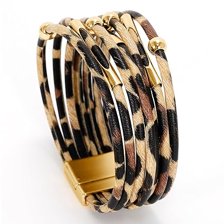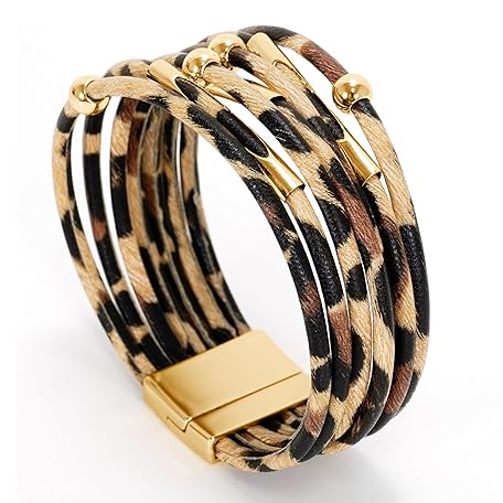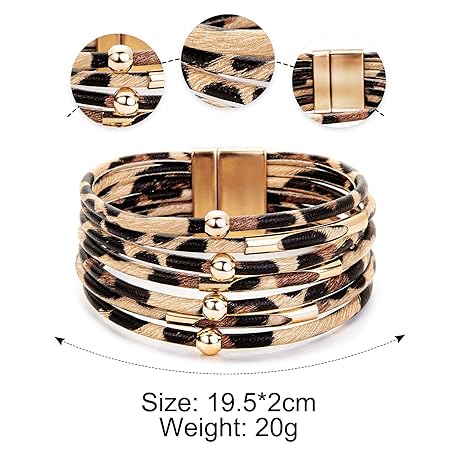 Sản phẩm Fesciory Leather Wrap Bracelets for Women, Boho Leopard Multi-Layer Crystal Beads Cuff Bracelet Jewelry đang được bán với giá ưu đãi là $15.2491 tại nước Mỹ.