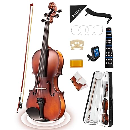 Thông tin sản phẩm Fesley Violin Fiddle Full Set: 4/4 Matt Violin Kit for Beginners, Acoustic Violin with Hard Case, Solidwood Hand Made Starter Kit with Bow, Rosin, Shoulder Rest, Tuner, Extra Strings