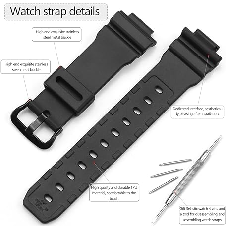 • Feyert Replacement Band Compatible with Casio 3232 DW9052 Men’s 200M WR Strap DW-9052 DW-004C DW-6900 GW-6900 G-2200 G-2210 Resin Bracelet 71606395