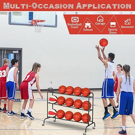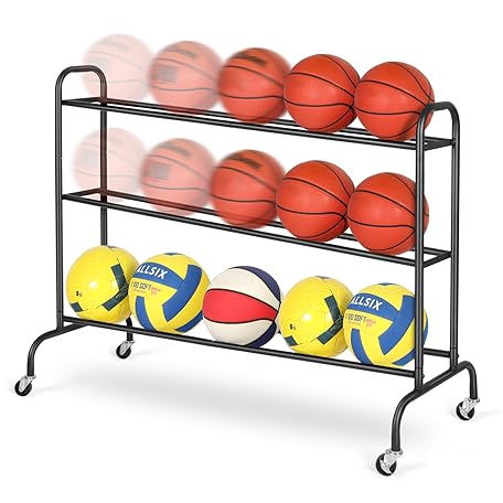 FHXZH Basketball Rack Training Stand - Tilt Ball Training Equipment Holder Shooting Rolling Storage Cart with Wheels Sports Outdoor Volleyball Soccer Football Garage Organizer Basketball Accessories