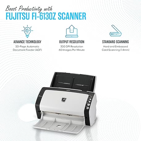 • FI-6130Z Fujitsu Duplex Sheet-Fed Receipt Document Scanner with 24V & USB 2.0 Cable (Renewed)