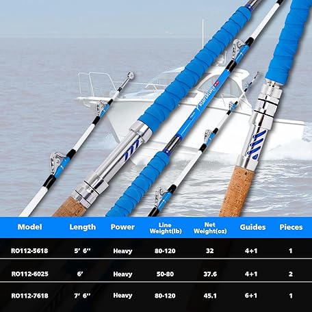 Fiblink Saltwater Fishing Rod Heavy Duty Trolling Rod Conventional Boat Standup Big Game Deep Sea Rod with Roller Guides(5'6"/6'/7'6",50-80lbs/80-120lbs)