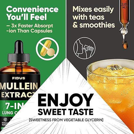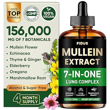 Fidus Mullein Drops for Lungs & Lymphatic Drainage – 7 Herb with Echinacea, Oregano, Ginger, Elderberry, Marshmallow Root & Thyme– Lung Detox for Smokers– Respiratory & Immune Support, 4 fl oz