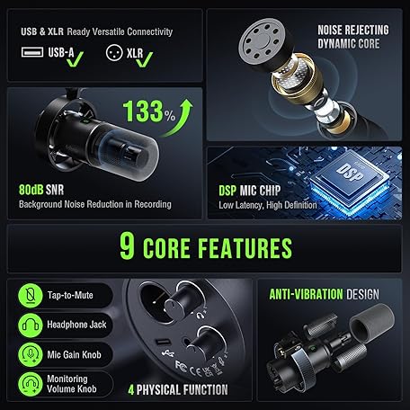 Thông tin sản phẩm FIFINE K688 Podcast Microphone Kit, USB/XLR Dynamic Microphone with Boom Arm for PC/XLR Mixer, Gaming Mic with Mute Button, Headphone Jack for Vocal, Voice-Over, Streaming, Music Recording -K688CT