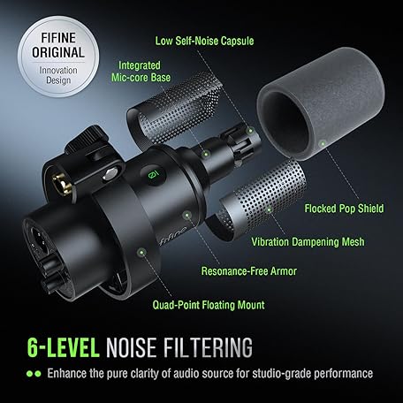 Thương hiệu FIFINE là cái tên nổi tiếng được rất nhiều khách hàng trên thế giới chọn lựa. Với kiểu dáng đẹp mắt, sang trọng, sản phẩm FIFINE K688 Podcast Microphone Kit, USB/XLR Dynamic Microphone with Boom Arm for PC/XLR Mixer, Gaming Mic with Mute Button, Headphone Jack for Vocal, Voice-Over, Streaming, Music Recording -K688CT là sự lựa chọn hoàn hảo nếu bạn đang tìm mua một món cho riêng mình.