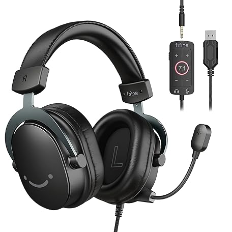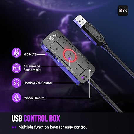 Thông tin sản phẩm FIFINE Wired Gaming Headset, USB Headphone with 7.1 Surround Sound, Detachable Microphone, Control Box, 3.5mm Headphones Jack, Over-Ear Headset for PC/PS5/Xbox/Switch, Black-AmpliGame H9