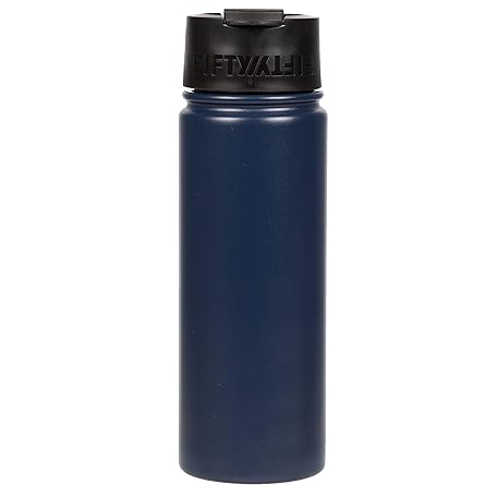 FIFTY/FIFTY 20oz, Double Wall Vacuum Insulated Café Water Bottle, Stainless Steel, Flip Cap w/ Wide Mouth, Navy, 20oz/591ml, (V20005NB0)