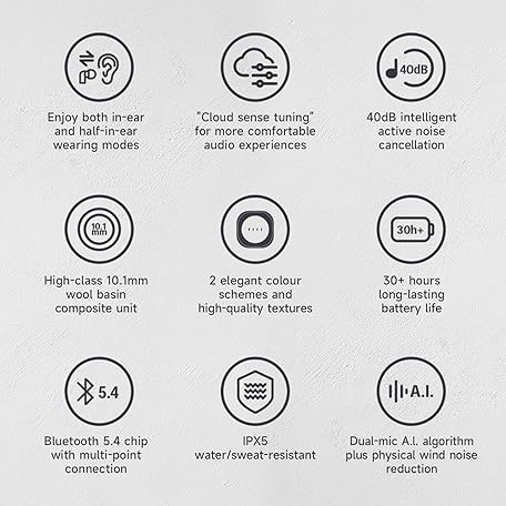 Thông tin sản phẩm FIIL Key Pro Wireless ANC Earbuds, 40dB Active Noise Cancellation Earbuds, 30Hours Playtime, IPX5 Waterproof, Bluetooth 5.4 Multipoint Connection, TWS Bluetooth Earphone