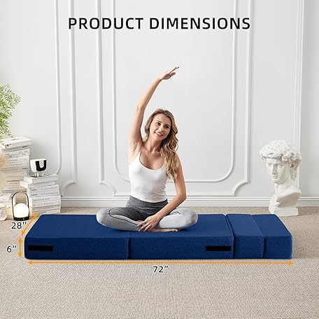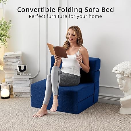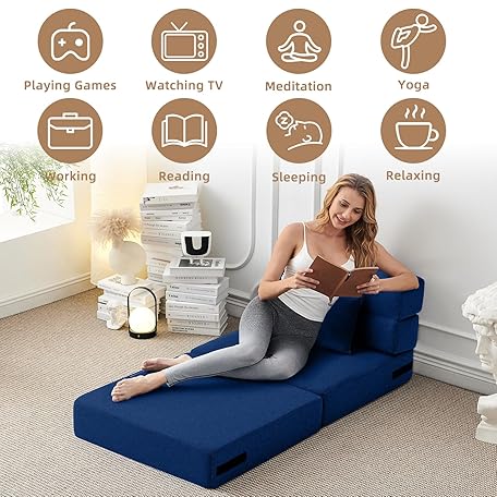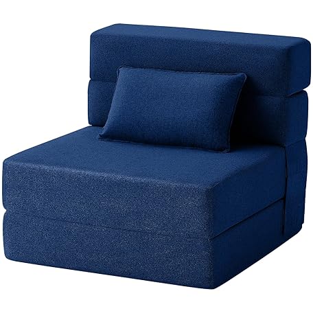 FILUXE Convertible Folding Sofa Bed - Sleeper Chair with Pillow, Modern Linen Fabric Floor & Futon Couch, Foldable Mattress for Living Room/Dorm/Guest Use/Home Office/Apartment, Single Size, Navy Blue