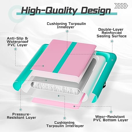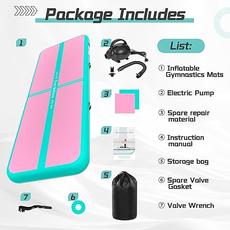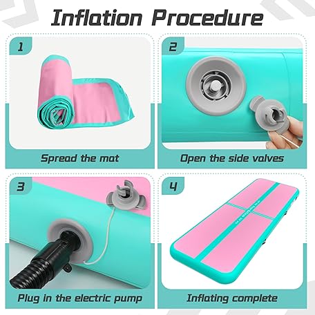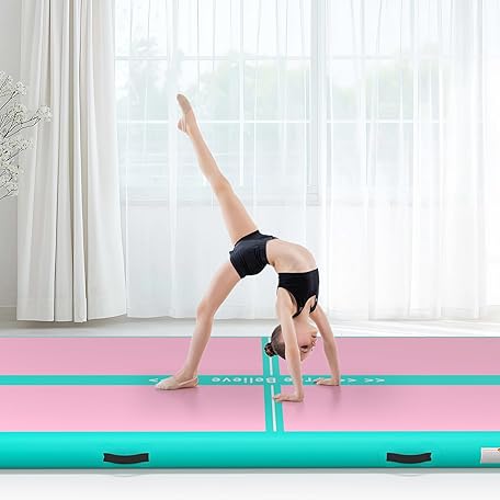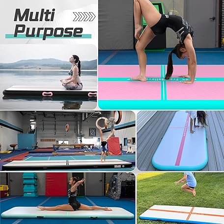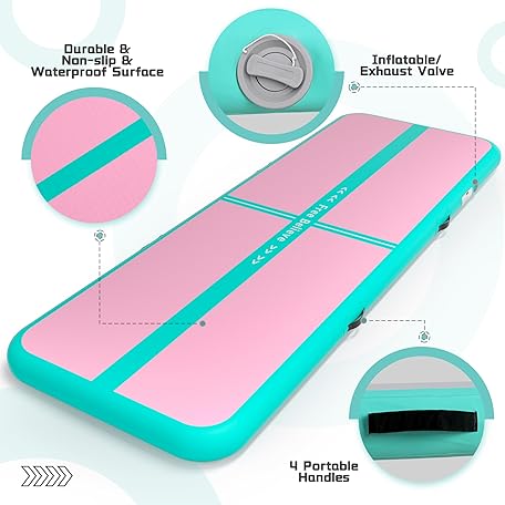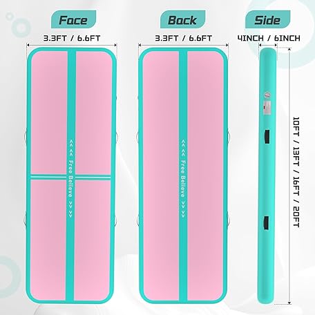 FINCOME Inflatable Gymnastics Mat Air Tumble Track Mats 10/13/16/20ft Training Mats for Home Use Air Mat with Pump 4”/6” Thick for Cheerleading/Yoga/Parkour/Beach/Park/Water