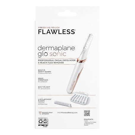 Sản phẩm Finishing Touch Flawless Dermaplane Glo Sonic Lighted Facial Exfoliator, Electric Vibrating Dermaplane Razor for Dermaplaning, Facial Hair Removal, 6 Replacement Heads đang được bán với giá ưu đãi là $19.0641 tại nước Mỹ.