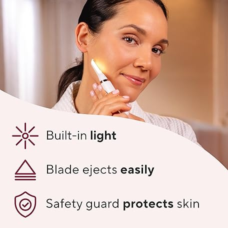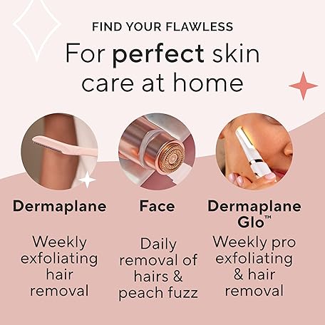 Thông tin sản phẩm Finishing Touch Flawless Dermaplane Glo Sonic Lighted Facial Exfoliator, Electric Vibrating Dermaplane Razor for Dermaplaning, Facial Hair Removal, 6 Replacement Heads