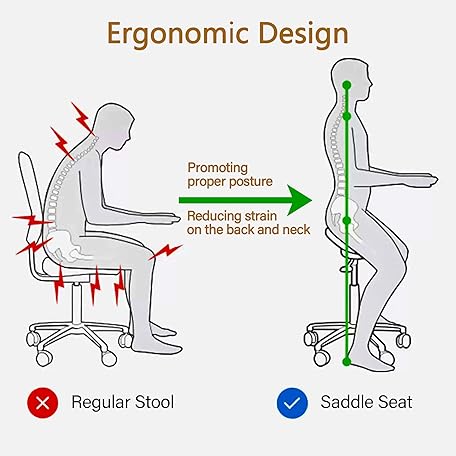 Thông tin sản phẩm FIRAVOE Saddle Stool, Swivel Saddle Stools with Wheels, Adjustable Rolling Stool 18"-26", Faux Leather Rolling Saddle Stool for Salon, Massage, Clinic, Lab, Office (Black, 1PCS (18"-26"))