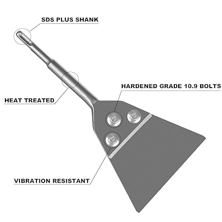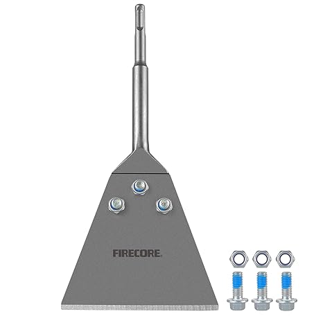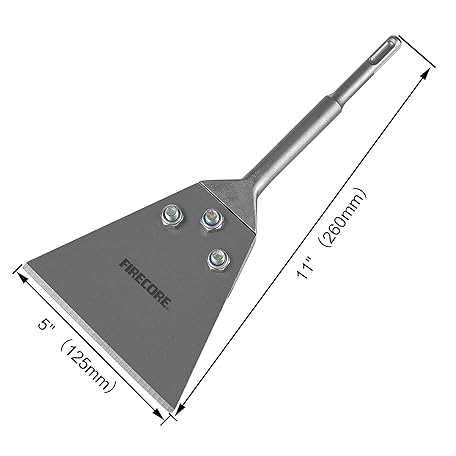 Thông tin sản phẩm Firecore SDS Plus Floor Scraper with Spare Bolts and Locknuts, 5 Inch x 11 Inch Tile Removal Chisel Tool Long Handle Heavy Duty for Rotary Hammer Drill, Thinset Scraper Adhesives Remover FS22510